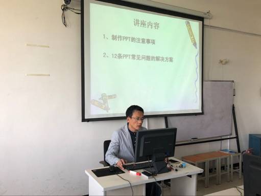 活动内容主要包括两部分,一部分是对于制作PPT的注意事项和PPT常见问题的解决方案进行讲解,另一部分是针对教师在制作课件的过程中遇到的问题进行现场答疑。老师们均积极参与,提出问题,于老师均给予相应解答,气氛活跃,效果显著。