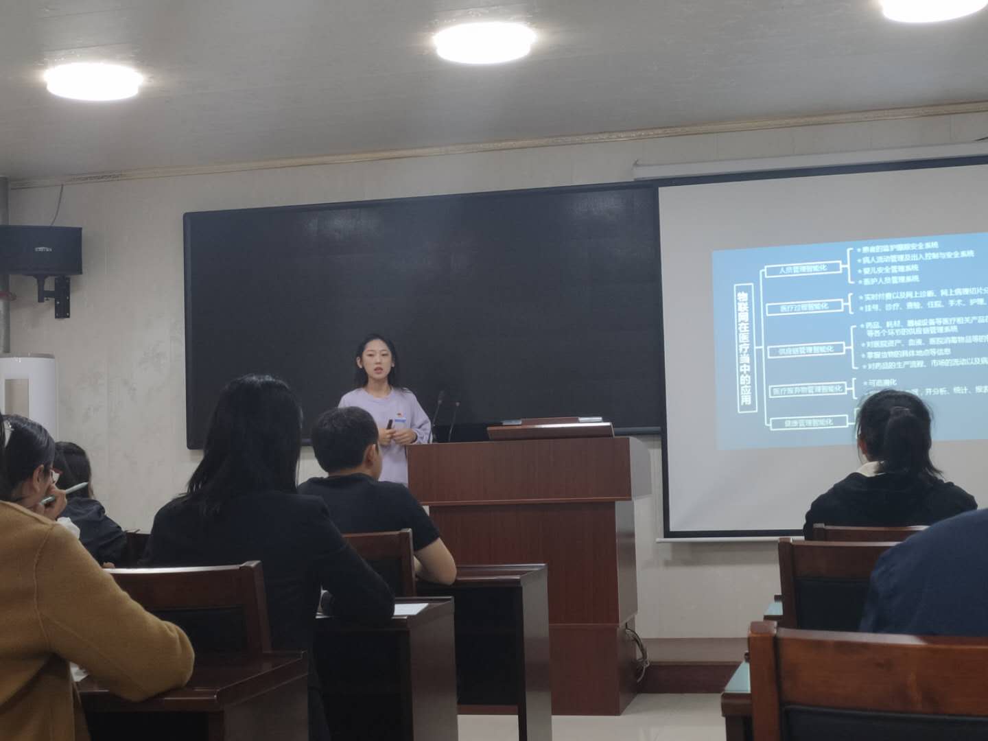 物联网是信息科技产业的第三次革命,是信息技术的重要组成部分。活动中首先由张晓宇老师对物联网的概念进行了简单介绍,然后分别由周倩玥、房丽华、马景琳老师分享了物联网在智能交通、智能医疗、智慧家居方面的应用实例。让大家对物联网技术及相关应用领域有所了解。