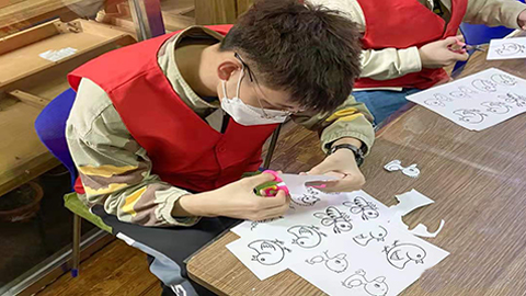 每名志愿者们照顾一位孩子,初次接触这群小星星们羞涩的脸庞,因紧张而不知所措,但在老师的带领下都以十足的状态陪着孩子们,主动与孩子们进行沟通,时不时的眼神交流,为孩子们精心裁剪出来平时需要用到的剪纸,带领孩子们做手工,以手工的乐趣充实了他们的心灵,用多元的形式帮助他们回归普校,融入社会中去,在交流一段时间过后,孩子们感受到了志愿者们对他们的关爱,慢慢地融入一起,气氛非常愉快,笑声连续不断,在活动末尾,志愿者们纷纷寄出了自己对孩子们的美好祝愿,也表示希望能让更多的人关注到自闭症儿童,让孩子们感受到爱与被爱。