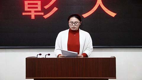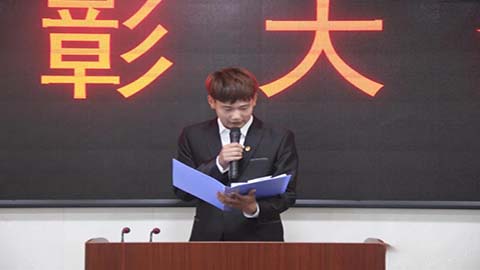 图为:院团委组织部部长郭笑成宣读大会内容