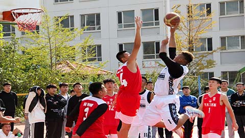 放眼同时进行的另一场比赛,哨声一响,双方争夺球权,汽车工程系20级队伍起跳稍晚一步,管理工程系20级队伍夺得球权,紧接着,突破、传球、投篮、毫不犹豫。汽车工程系20级队伍凭借丰富的经验迅速调整战术,快速带球篮下妙传助攻得分,又通过有效的防守限制住了管理工程系21级队伍的投手。