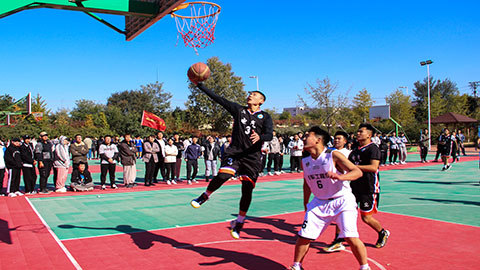 管理工程系21级队伍的配合渐入佳境,数次看准时机上篮得分。双方队伍的实力旗鼓相当,一直未能拉大比分。双方队伍的防守都十分严密,截断、盖帽时机展现的精彩万分。