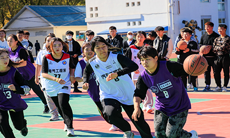 机械工程系20级队伍的配合可谓是行云流水,凭借强有力的攻势取得分数上的暂时领先。但电气工程系21级队伍并没有气馁,用那坚定的信念对待每一个看好他们的观众,抢断、上篮、三分,每一次出手都强而有力。