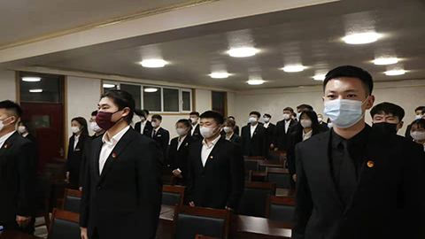 大会在庄严肃穆的国歌声中拉开序幕,与会领导和代表们全体肃立,一同奏唱国歌。