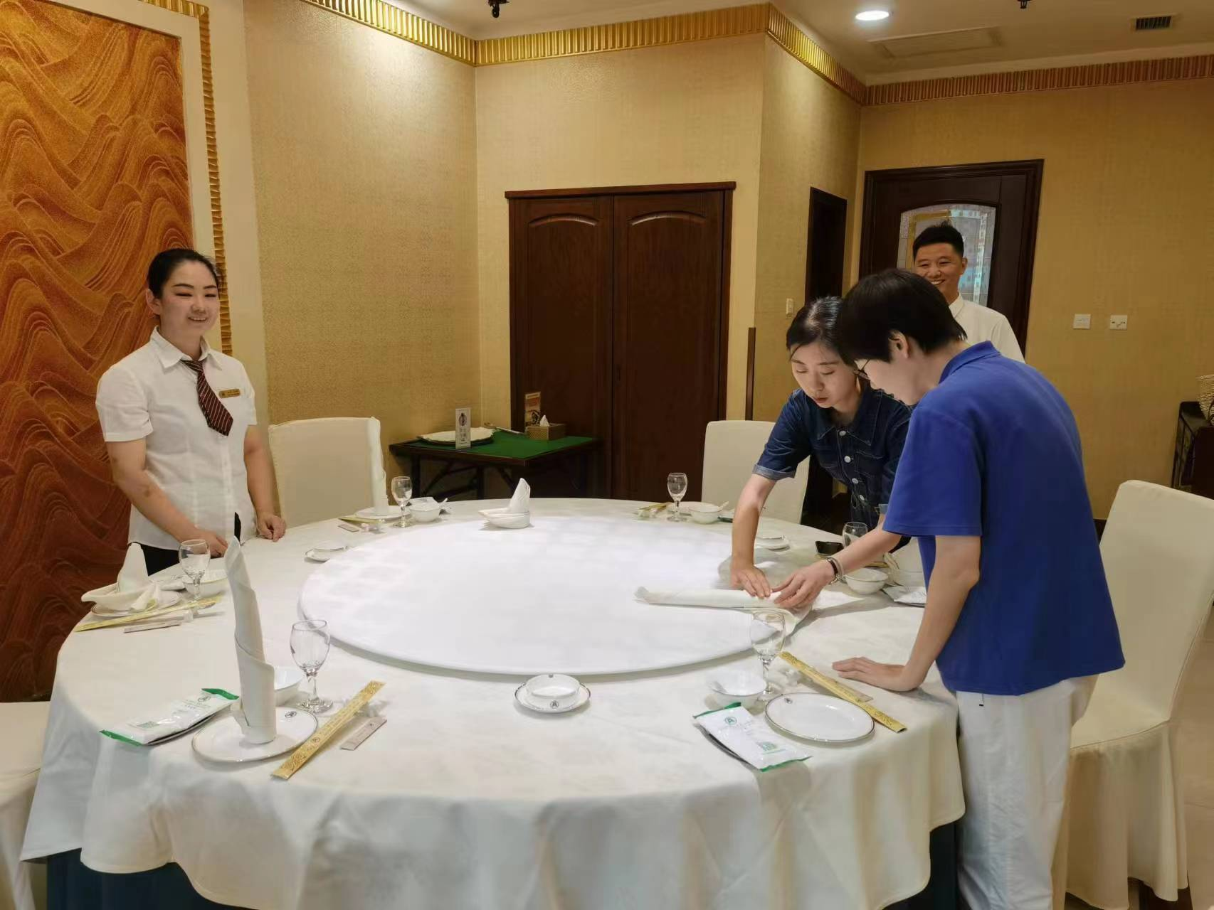 在挂职期间,三位教师在金山宾馆进行轮岗实践,第一周主要在中餐部,三位教师服从学院和挂职单位的双重管理,虚心学习,努力掌握实践技能,了解行业发展现状,为今后的教育教学工作奠定了基础。