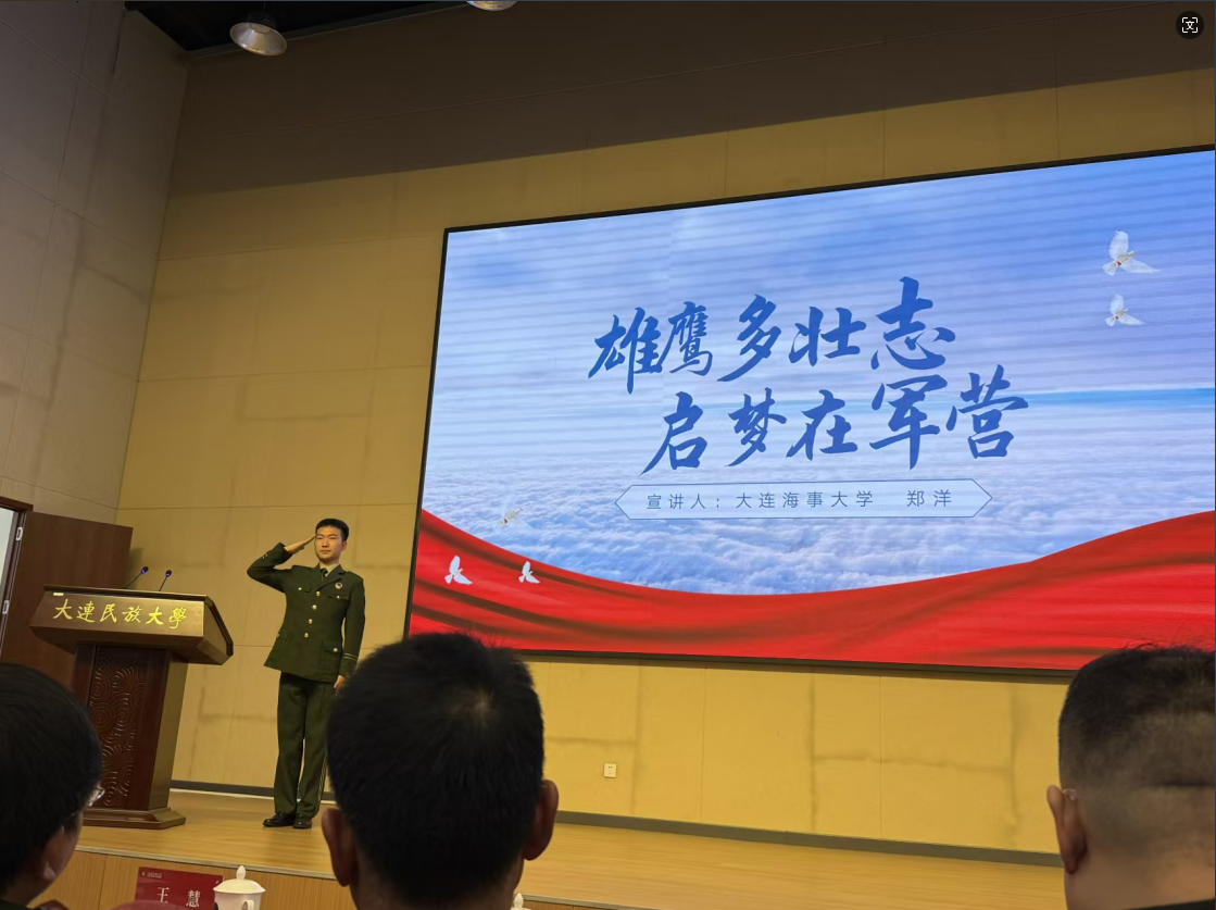在本次宣讲报告中,大连海事大学教师张亚培、辽宁师范大学教师车延峰、大连理工大学学生高航、大连海事大学学生郑洋、大连民族大学学生赵茹芯分别以《祖国召唤时,吾辈正青春——让青春在军旅绽放光芒》、《沿着雷锋足迹建功军营,弘扬雷锋精神投身振兴》、《熔炉锻我凌云志,盛世驰骋似龙虎》、《雄鹰多壮志,启梦在军营》、《逐梦边疆,铸就无悔青春》为题分享他们的热血参军故事和深刻感悟,展现难忘的军旅生活。他们用青春和热血投身军营,为实现强国梦、强军梦贡献了自己的力量,他们退伍不褪色,在各自的领域发光发热,在新的战场拼搏奋斗出新的荣光。