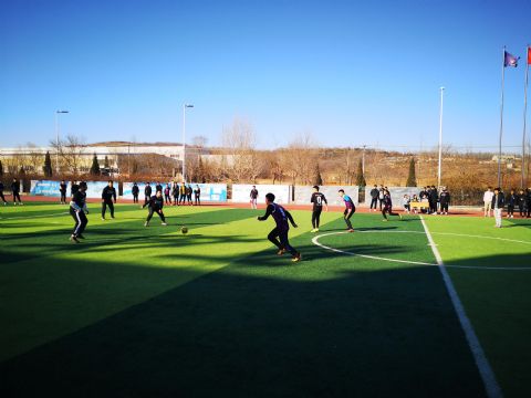 随着裁判的一声哨响,比赛正式开始。寒冷的天气也挡不住大家的热情,双方都使出全力,你拼我抢,比赛很快进入了状态。