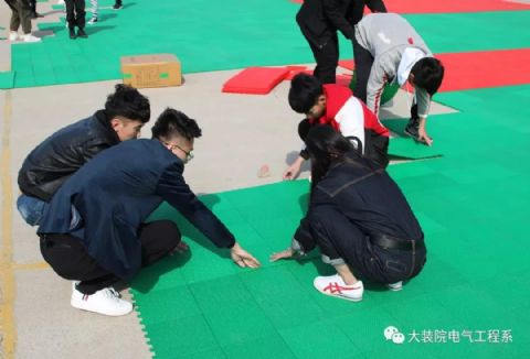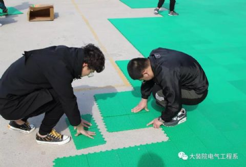 3月27日下午,电气系组织义务劳动铺篮球场地,全体大一学生参加义务劳动。