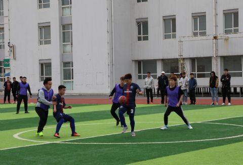 下半场比赛开始,双方球员都爆发出了自己最大的能量,两队滴水不漏的防守都给对方带来了巨大的进攻压力。一声哨响,比赛正式结束,虽然本场比赛两队没有进球,但双方球员势均力敌的球技,给同学们带来了一场极佳的视觉盛宴。
