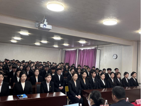 宣讲会上,首先播放了一段动车组乘务员的视频,同学们对乘务员工作也充满期待。李宏有段长借此视频详细讲解了本次大连客运段对于动车组列车员岗位的用人要求、培训安排、工资待遇等内容,并对同学们的职业素养提出了较高要求。他表示,希望大家作为未来中国铁路客运服务专业人才,务必做到吃得了苦,受得了委屈,在实习工作中勤奋努力,不断磨炼客运服务技能。