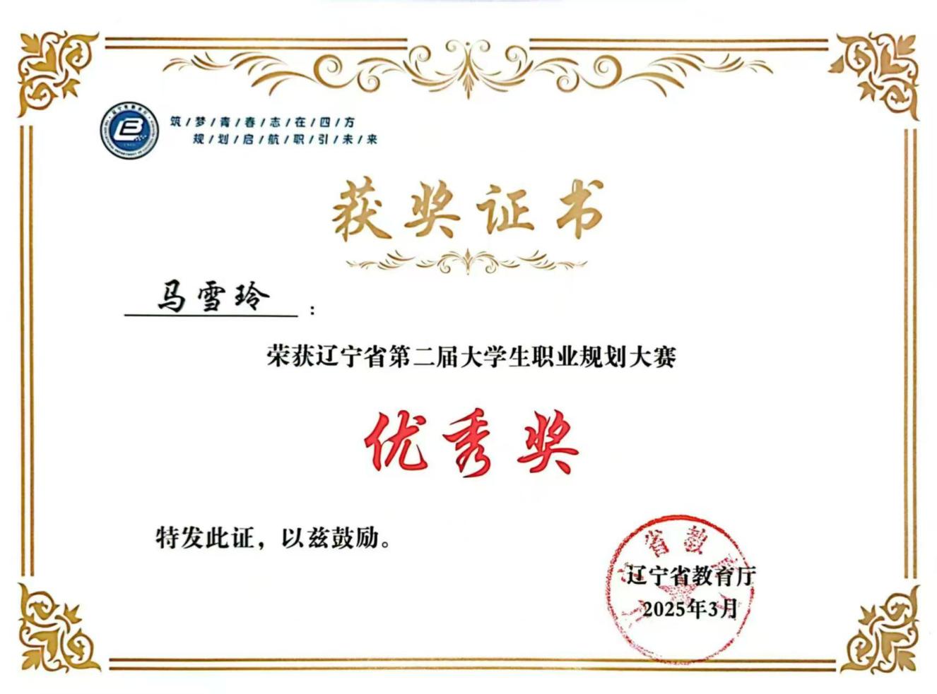 近期,由辽宁省教育厅主办的“辽宁省第二届大学生职业规划大赛”结果揭晓。我系2023级城市轨道交通运营管理专业学生马雪玲凭借扎实的职业规划素养,从众多参赛者中脱颖而出,荣获大赛优秀奖,为学院再添荣誉。