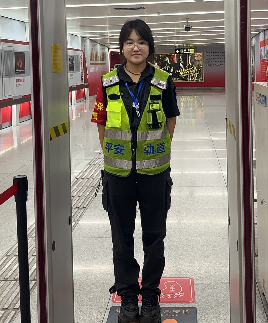 在各线路安检口,她们承担起“安全守门人”的角色。每日提前到岗参加班前会,明确当日重点任务后,迅速投入工作,引导乘客有序通过X光机安检;手持探测仪,细致排查乘客随身物品,不放过任何可疑迹象。