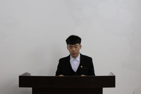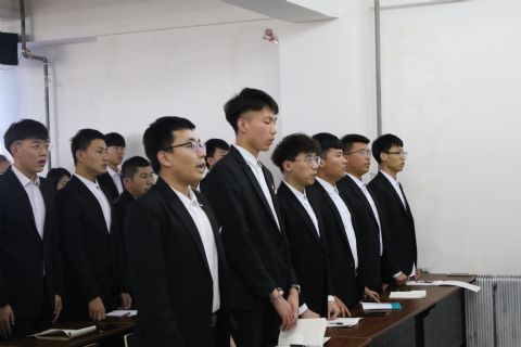 在代胜航同学的带领下,全体参会人员面向团旗进行了庄严宣誓,重温了入团誓词。铿锵有力的誓词表达出了同学们做为一名优秀团员的决心。
