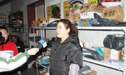 图为:在快递点工作的员工接受ky开元集团官网记者的采访