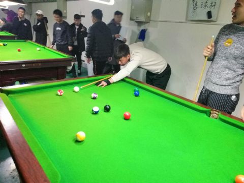 2018年11月8日,台球社团的成员们在台球社举行了社团活动。两人一组分组对抗,同学们以精湛的球技,扎实的基本功,在球桌上用球杆演绎了一场场精彩的对抗。 1号桌的于文泽同学以精湛的球技上演了一场精彩的对决。