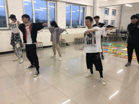2019年5月15日舞蹈社团在教学楼401教室进行本周的社团活动。