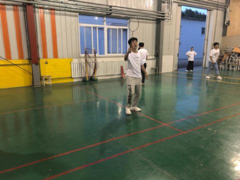 羽毛球社社长为大家讲解完后,羽毛球球社的成员便开始进行训练,2个人一组以对打的形式来进行练习,这样更能激发出羽毛球社社团成员们之间的斗志,时间不断的流逝,大家的汗水打湿了衣服,汗水不断的滴落在地下,虽然平抽球很难,但是羽毛球社社员们仿佛在告诉我们,没有什么能够阻止我们前进。