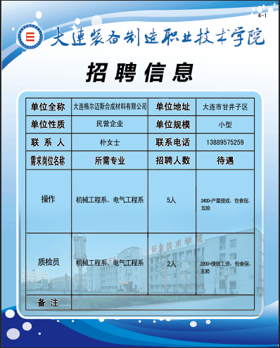 大连格尔迈斯合成材料有限公司招聘