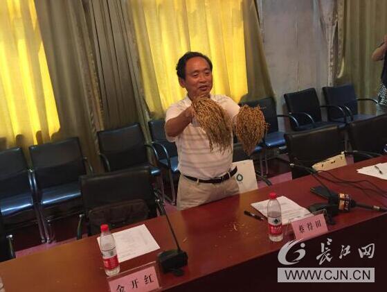蔡得田教授展示多倍体水稻和常规水稻对比