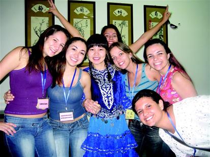 图为:2010年6月,国交专业学生与巴西圣保罗孔子学院代表团团员交流。